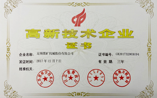 1989年命名無錫煤礦機械廠為國家二級企業(yè)