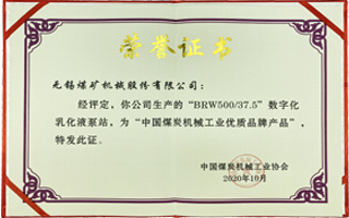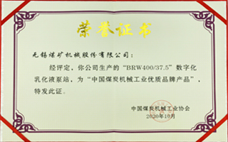 中國煤炭機械工業(yè)優(yōu)質品牌產品