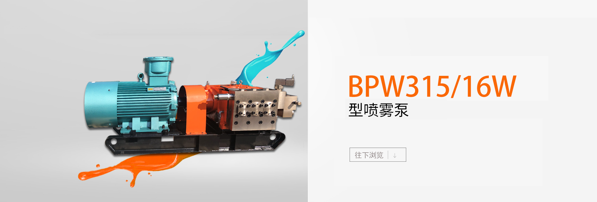 BPW315/16W系列噴霧泵與QX400/30清水箱組成噴霧泵站,是為煤礦井下各種采煤機(jī)、掘進(jìn)機(jī)提供噴霧滅塵所需壓力水的動(dòng)力設(shè)備。該泵站由兩臺(tái)泵和一臺(tái)箱組成。一臺(tái)泵使用,一臺(tái)泵備用。