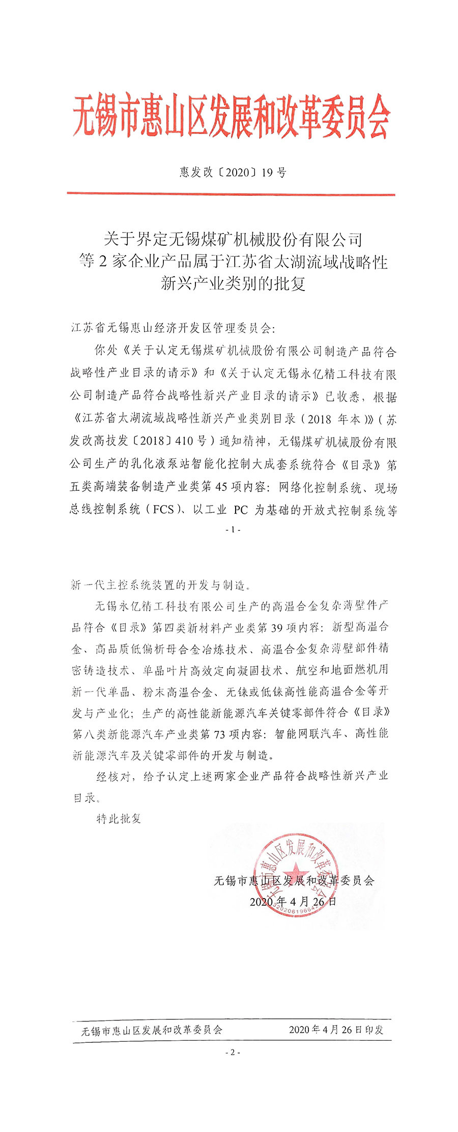 熱烈祝賀無錫煤機(jī)生產(chǎn)的乳化液泵站智能化控制大成套系統(tǒng)申報“江蘇省太湖流域戰(zhàn)略性新興產(chǎn)業(yè)類別”成功,并獲批文。特此祝賀!